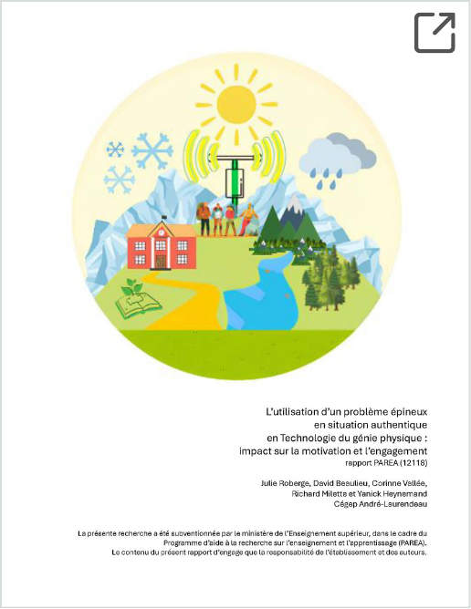 Roberge, J.; Beaulieu, D.; Vallée, C.; Milette, R et Heynemand, Y. (2025). L’utilisation d’un problème épineux en situation authentique en Technologie du génie physique : impact sur la motivation et l’engagement. Cégep André-Laurendeau. https://eduq.info/xmlui/handle/11515/40093